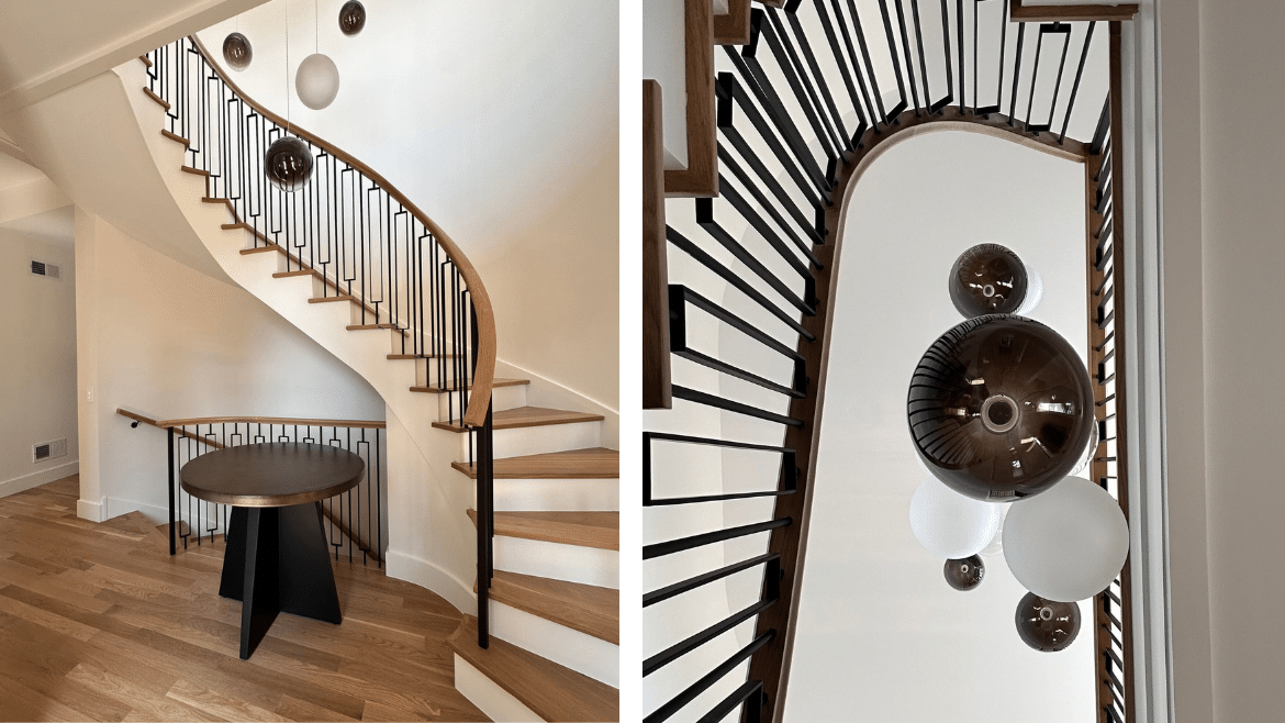 read more An overview of a dramatic entry stair in this modern new construction home in Northfield, Illinois, hosted by architect…
