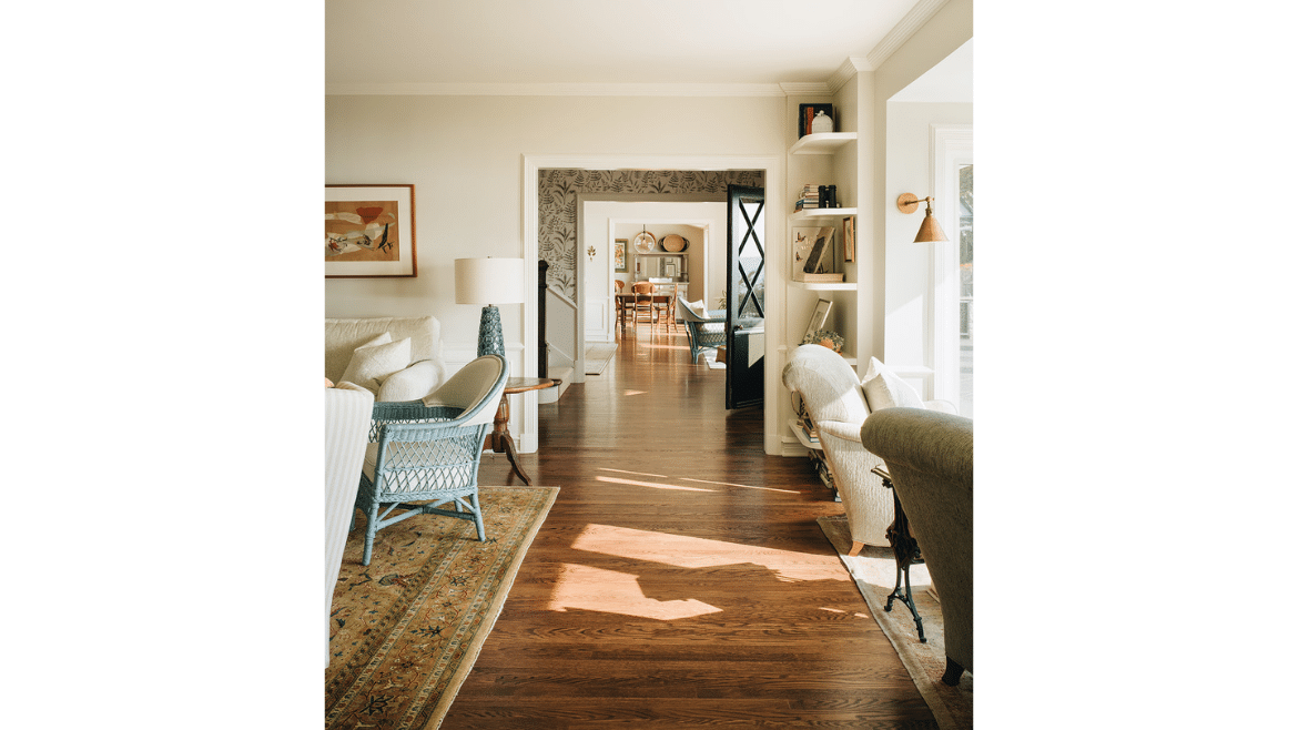 - Connecting big spaces as an enfilade (a suite of rooms with doorways in line with each other) so you can see from one end of the house to the other, making the house feel generous and helping with flow