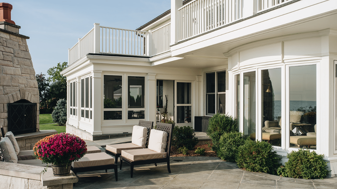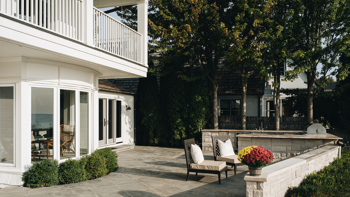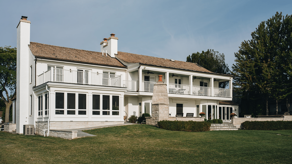 A client that had done their first build with us in Winnetka came back to SSDB to refurbish a beautiful house in Racine, Wisconsin that sits on Lake Michigan. The original house was built in 1939, and a recent owner had remodeled and put on a large addition that needed some love. Our architectural design plan reimagined the home as a sophisticated yet casual lakefront retreat. It’s a little art deco, but not too far from tried-and-true traditional home design. Fortunately, some lovely original features were still intact and it was important to our homeowners to not only keep them, but to design around and showcase them.