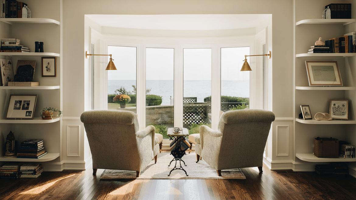 - Including large rooms for gatherings as well as smaller alcoves for more intimate conversation, like the bay window seating areas
