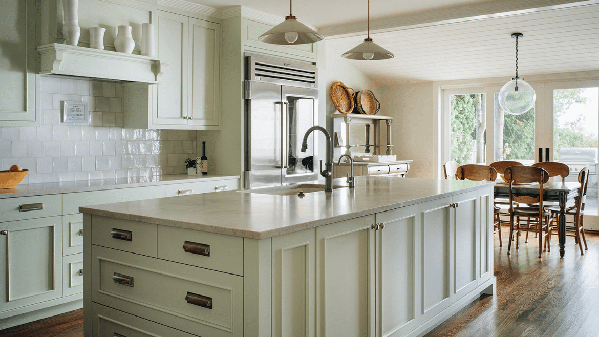 Remodeling is always trickier than building new. Our team of architects and builders worked hard to make the remodeled spaces feel like they could always have been that way. Details like reproducing trim to match the existing is key to getting the interiors to feel right. The custom cabinets in the kitchen and primary bath helped to convey the owner’s style and taste as well as honor the vintage of the original house. Through it all we were able to pivot and find budget efficiencies to keep costs down.