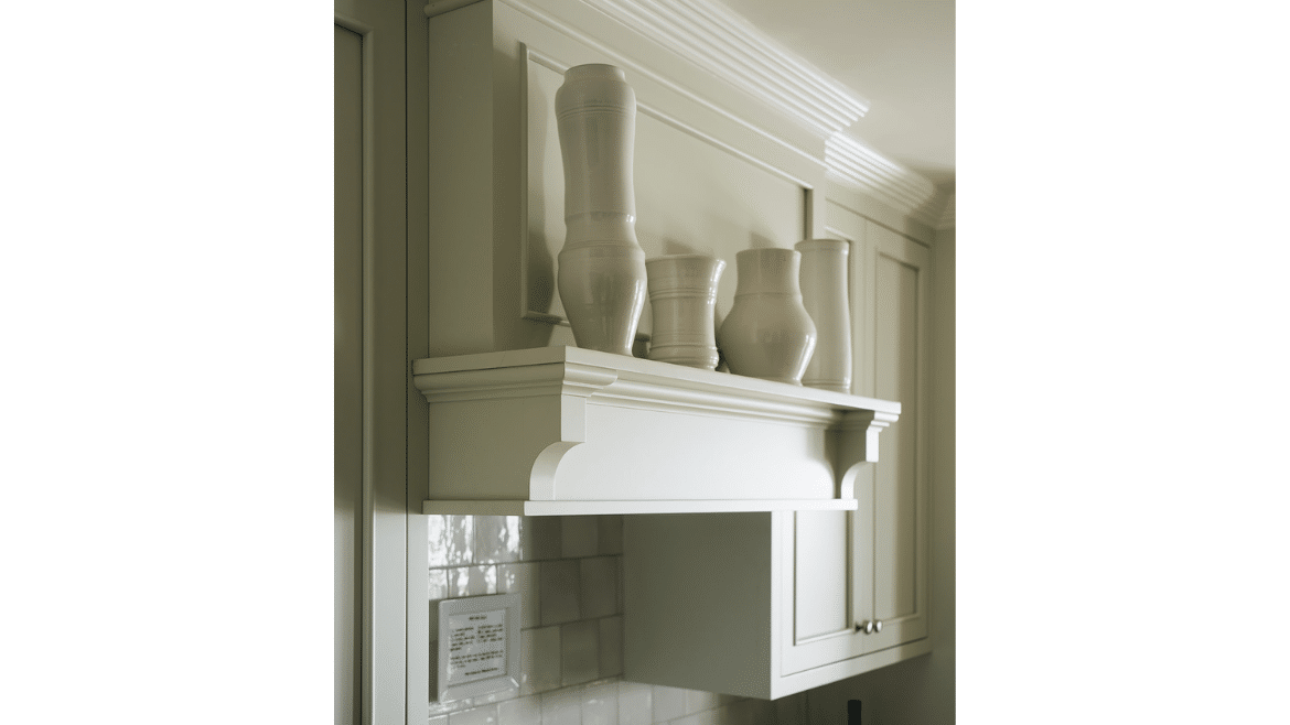 - Hiding part of the old sloped roof over the kitchen by burying it in an upper cabinet