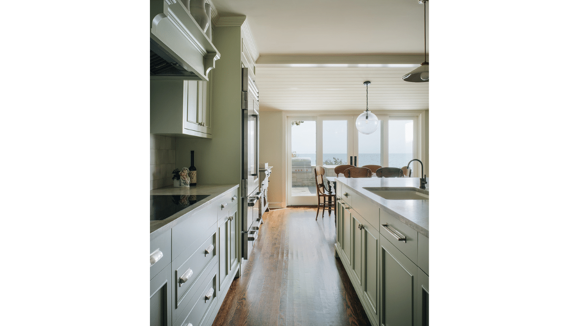 The views and connections to the lake are integral to the life and vibe of this home. A new screened-in porch, located strategically to not block any primary views but still be close enough to invite you in, was added to the lake house renovation plan. Some of the most important features for the renovation revolved around accommodating a family member that uses a wheelchair – like zero threshold bedroom and bathroom doorways and space for wheelchair parking. The house has plenty of square footage and we were able to create generous circulation paths and a first-floor bedroom suite that allow the whole family to enjoy the home and the adjacent lake. Other special elements incorporated into the home redesign include:
