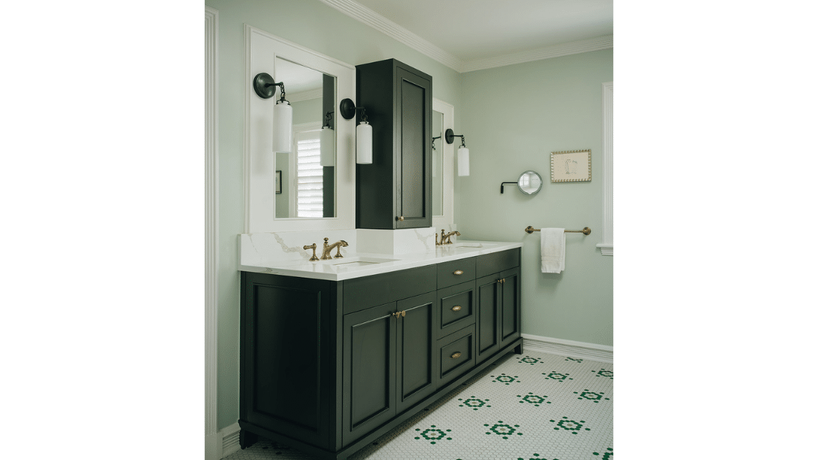 - Installing new cabinets, tile, open shelf storage and built-in shower in the primary bathroom that match the style of the original house and taste of the owners