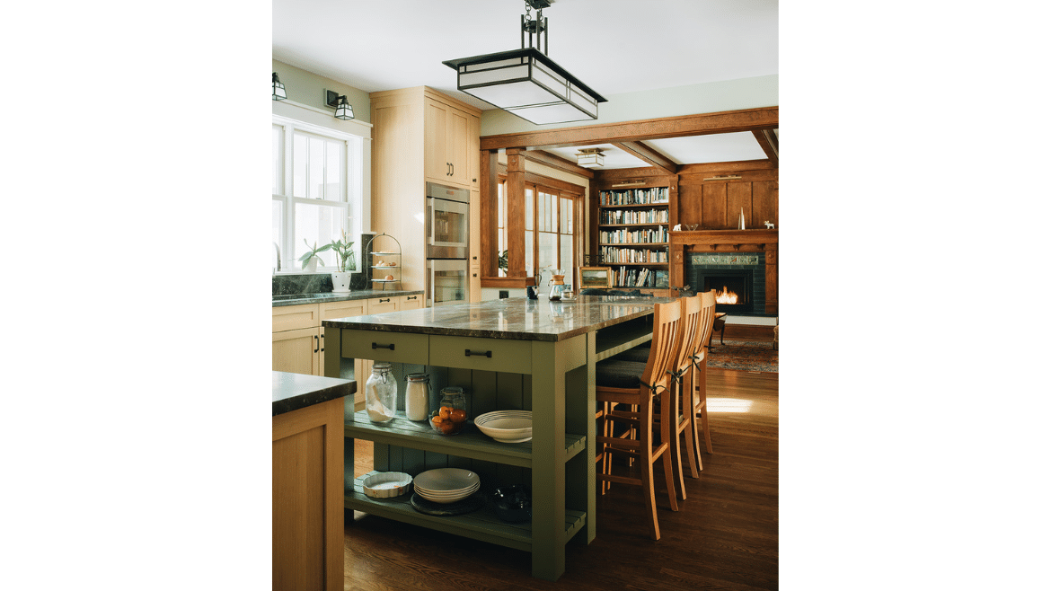 The characteristics of traditional craftsman style are evident throughout the home, with a bit of whimsy and eco-friendly ingenuity made available by the custom design-build process.